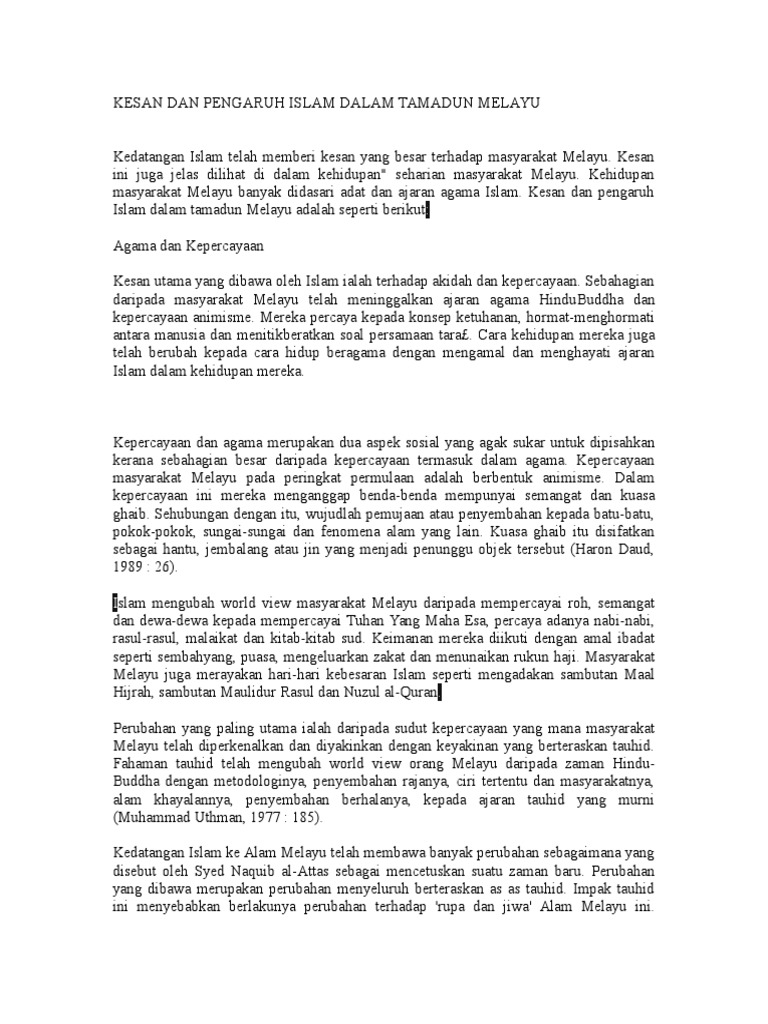 Kesan Dan Pengaruh Islam Dalam Tamadun Melayu Pdf